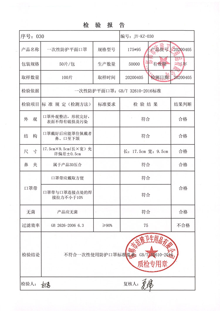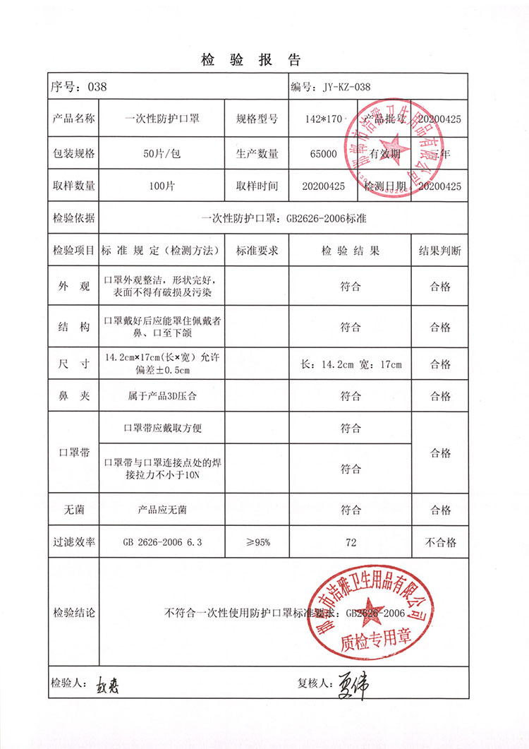 邯鄲市潔雅衛(wèi)生用品有限公司生產的品牌為JYM93D立體口罩一次性平面口罩,為非醫(yī)用防護口罩;KN95 防護口罩非醫(yī)用。生產日期為:2020年3月10日至2020年4月30日,在此期間生產的部分產品有質量問題,在疫情期間因供應商供應的熔噴布質量部分出現(xiàn)不達標,造成產品不合格。望各省、市市場監(jiān)管部門如發(fā)現(xiàn)我們公司產品進行告知,各銷售商如還有我公司產品,望您告知我公司業(yè)務人員,我公司將安排技術人員上門檢驗,批次產品是否合格,如發(fā)現(xiàn)不合格產品,我公司進行召回,不合格產品按進貨價給予退回。望各省市市場監(jiān)管部門給予幫助召回召回日期為2020年8月25號至2020年9月25號